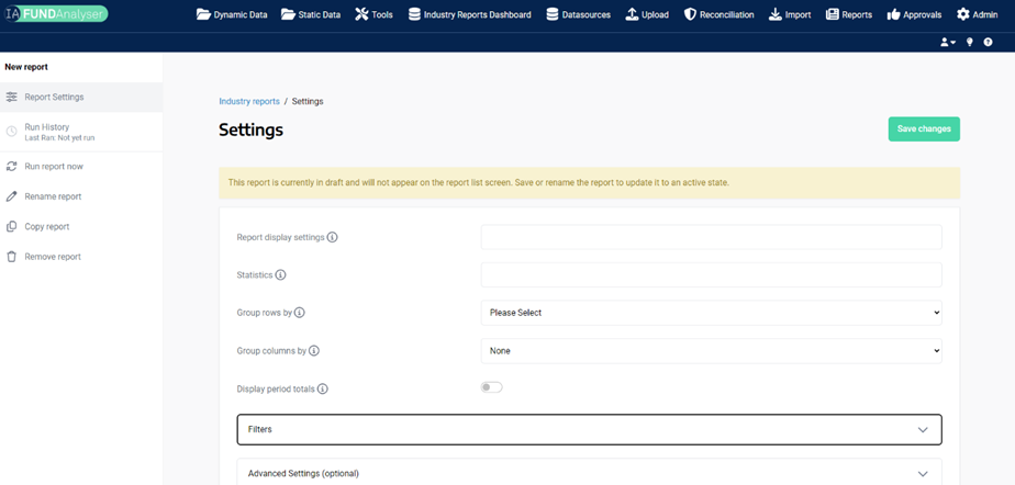 If you have experience using the EchoWeb system before, the logic of the FundAnalyser reporter is similar. We have combined the functionality of all EchoWeb’s reporting capabilities into one interface to simplify the user experience, and enhance efficiency by allowing both Industry and Own statistics to be outputted in the same file.