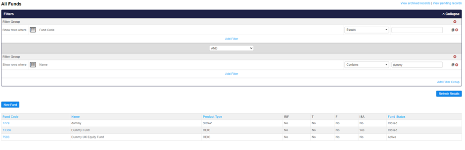 4. Click on the hyperlinked fund code to enter the record UI.