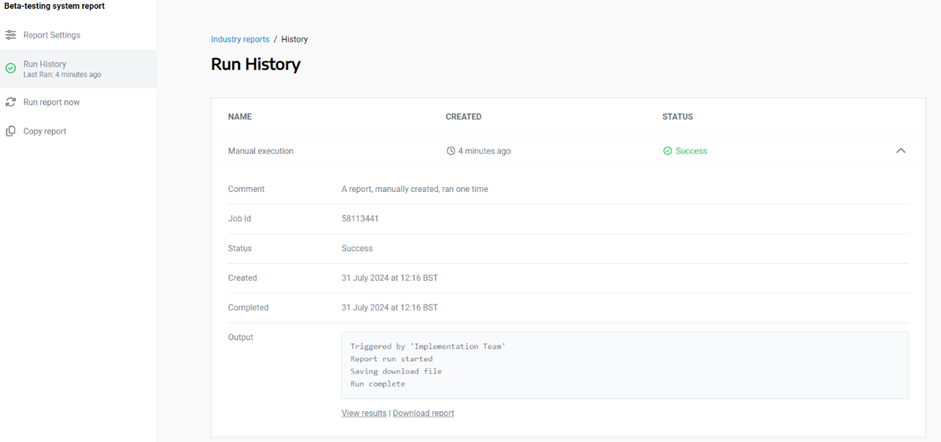 4. Save the report, rename it and run the report. You’ll be able to find all your reports in the “Industry Reports” page.