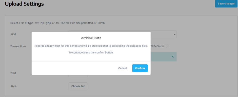 2. Choose and upload FUM and Transactions files for this month.