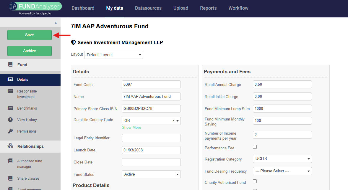 Once you make changes to an existing record, you can click the Save button on the side menu.